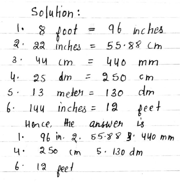 144 ft → l (in) solve the above proportion to obtain the length l in inches: